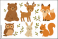Fototapeta - Cute flat vector illustration of forest animals featuring a bear, deer, fox, owl, rabbit, and squirrel among leaves and branches