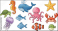 Collection of aquatic cartoon animals on white background. Sea life, marine animals, underwater, ocean creatures, illustration, kids, cute, playful.