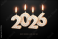 >Plakat>Tematy>2026 Happy New Year greeting card vector background. 2026 candle beige numbers with fire on black. Festive sparkle holiday postcard, invitation, banner for social media.