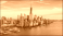 Aerial view with Lower Manhattan skyline at sunset viewed from above Hudson River
