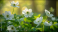 Zawilce leśne w promieniach porannego słońca.
