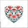 Kompozycja w kształcie serca z maków. Ręcznie rysowane czerwone kwiaty z zielonymi liśćmi – botaniczna ilustracja wektorowa.