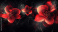 Piękne abstrakcyjne czerwone kwiaty na czarnym tle, dekoracja generative ai