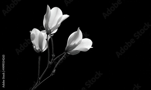 Fototapeta - Trzy białe kwiaty na czarnym tle