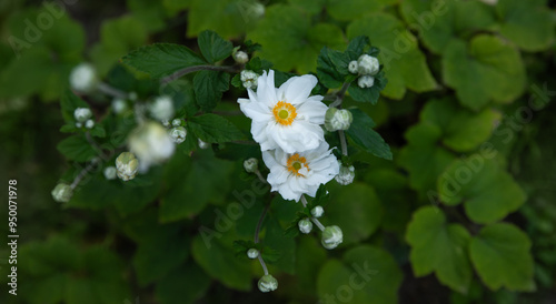 Fototapeta - Anemony, zawilec, Zawilec wieńcowy w rozkwicie, białe kwiaty