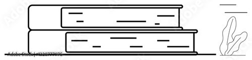 >Plakat>Tematy>Uliczki>Stack of horizontal books over a flat surface with a small abstract plant on the side. Ideal for education, research, study, reading culture, knowledge, minimalism themes, flat simple metaphor