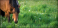 Fototapeta - Brązowy koń wśród dmuchawców na łące.