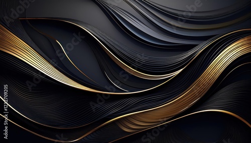 Fototapeta - Luxurious Black Lines and Golden Accents on a Gradient Background A Captivating Abstract Illustration Showcasing the Elegance of Black and Gold on a Gradual Color Transition