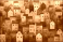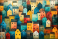 Illustration of a city with lots of simple colorful houses, simplistic style