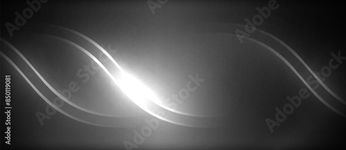 >Plakat>Tematy>Abstrakcje>Neon glowing circle rays, light round lines in the dark, planet style neon wave lines. Energetic electric concept design for wallpaper, banner, background