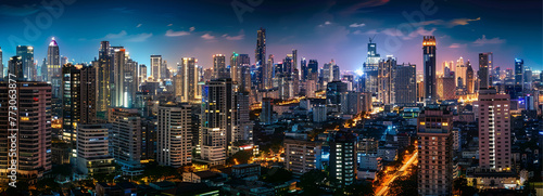 City of Bangkok, Sukhumvit skyline night shot panorama, AI Generative.