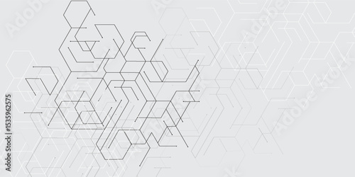 Fototapeta - Geometric hexagon lines and dots connection banner template.
