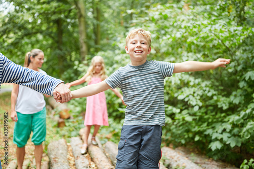 Fototapeta - Kinder balancieren auf Baumstämmen