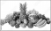 PNG. Tropical fruits pineapple, watermelon, grapes, peaches, pears, figs, tangerines, bananas