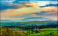 Fototapeta - Widok na Beskid Wyspowy o zachodzie słońca, wiosna, zamglona dolina.
