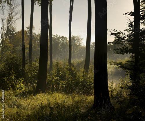 Buczyna jesienią wczesnym rankiem