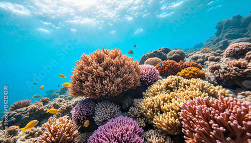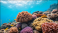 Vibrant coral reef thriving underwater, healthy ocean ecosystem