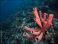 Seascape of coral reef in the Caribbean Sea around Curacao at dive site Grote Knip with various corals and sponges