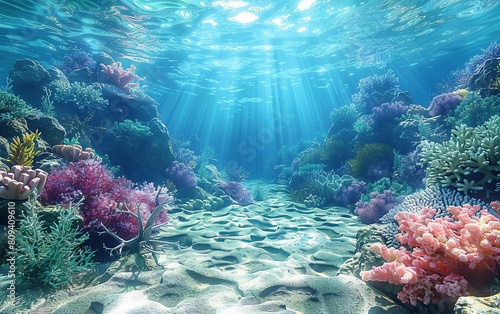 Fototapeta - A beautiful coral reef dropoff, where the shallow reef suddenly plunges into the deep blue abyss