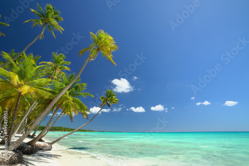 Fototapeta - perfekter Strand mit Palmen