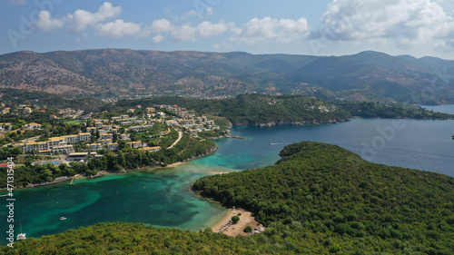 Aerial drone photo of paradise bay and complex islands of Sivota a popular summer destination, Ionian, Greece