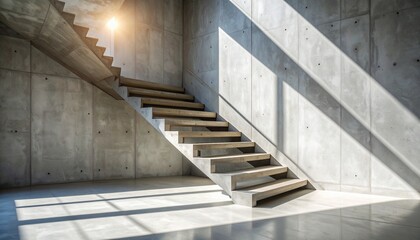 "Minimalist concrete staircase ascending through a grid-patterned wall, bathed in sharp sunlight and angular shadows—evoking precision, solitude, and architectural introspection."